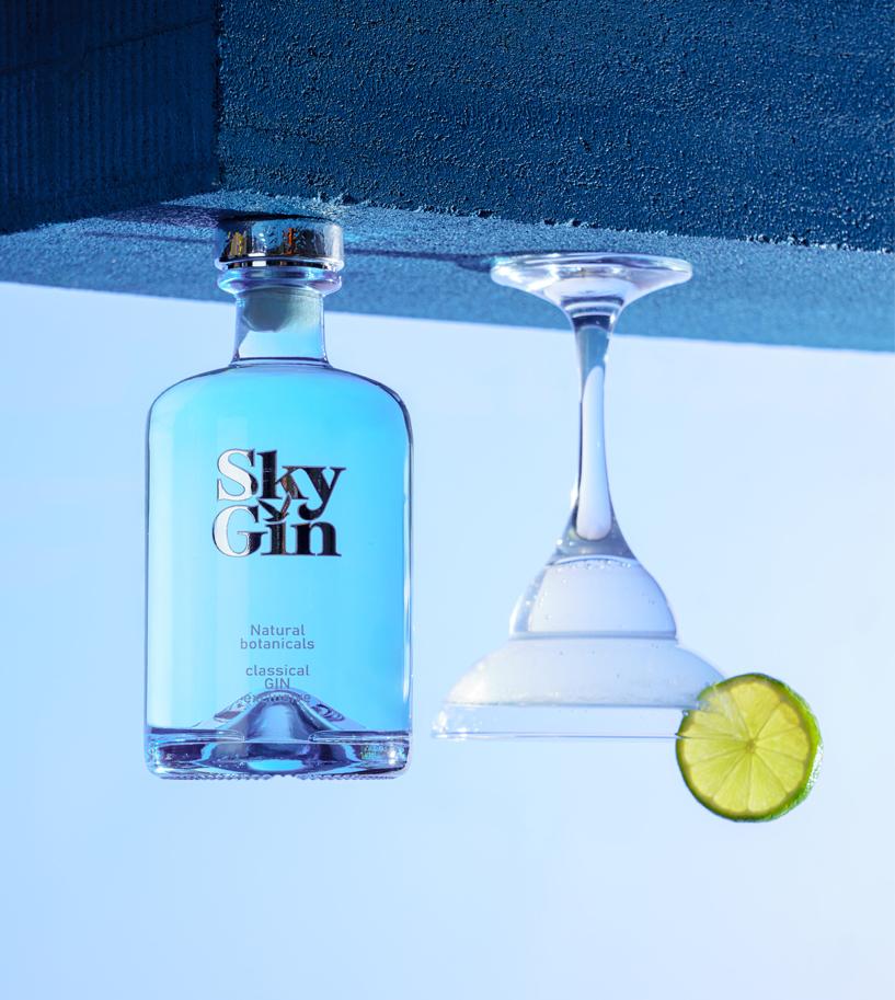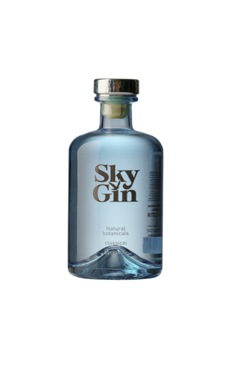 Джин SKY отвечает всем особенностям высококачественного напитка. GIN "Sky"-100% ароматные спирты. В производстве используются три основных компонента: лучший зерновой спирт класса Люкс, родниковую воду и многочисленные ботаникалы, среди которых основным ингредиентом является можжевеловая ягода. Способ его производства аналогичен методу создания классического London Dry Gin – настоящего качественного сухого джина с английским акцентом. Дистилляция проходит в аламбике, с использованием джин – корзины, в которой размещены натуральные растительные компоненты, сквозь которые проходят спиртовые пары. Таким образом, формируется богатый аромат, который раскрывается лакрично-можжевеловыми оттенками в палитре из пряностей, трав и цитрусовых. Имея сложный состав и высокое содержание алкоголя 43%, джин имеет превосходный баланс вкуса и аромата.