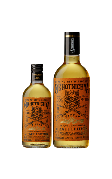 Концепция и дизайн Настойки «Охотничья» разработан в рамках совместного проекта правообладателя товарного знака – ФКП «Союзплодоимпорт» и ЛВЗ Стрижамент, как производителя качественного алкоголя. При создании этого продукта мы постарались максимально приблизиться к исторической рецептуре горькой настойки «Охотничья». Мацерация ботаникалов проходит в экстракционных установках. Ароматные спирты полученные методом дистилляции с использованием медного аламбика, насыщают настойку неповторимым пряно-цитрусовым букетом апельсиновой цедры, аниса, имбиря, можжевельника и кофе.