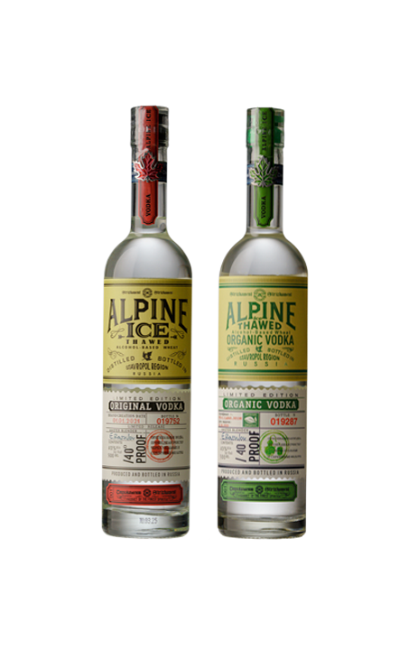 Водка "Alpine ice organic", повышенной чистоты на родниковой воде и обладатель сертификата ORGANIC, который подтверждает производство органического продукта. Спирты дважды проходят многоступенчатую систему очистки-сухим обезжиренным молоком, мелкодисперсным кокосовым углем, который по качеству превосходит другие виды угля. Мягкость и характерную округлость во вкусе водка приобретает благодаря созреванию и отдыху более 60 дней. ALPINE ICE Original - оригинальная водка, гармонично соединяет в себе инновации и традиции. В купаж напитка входит спирты класса Люкс из лучших сортов пшеницы с высочайшими показателями качества и органолептики, родниковая вода, мёд натуральный и спиртованный настой овсяных хлопьев.